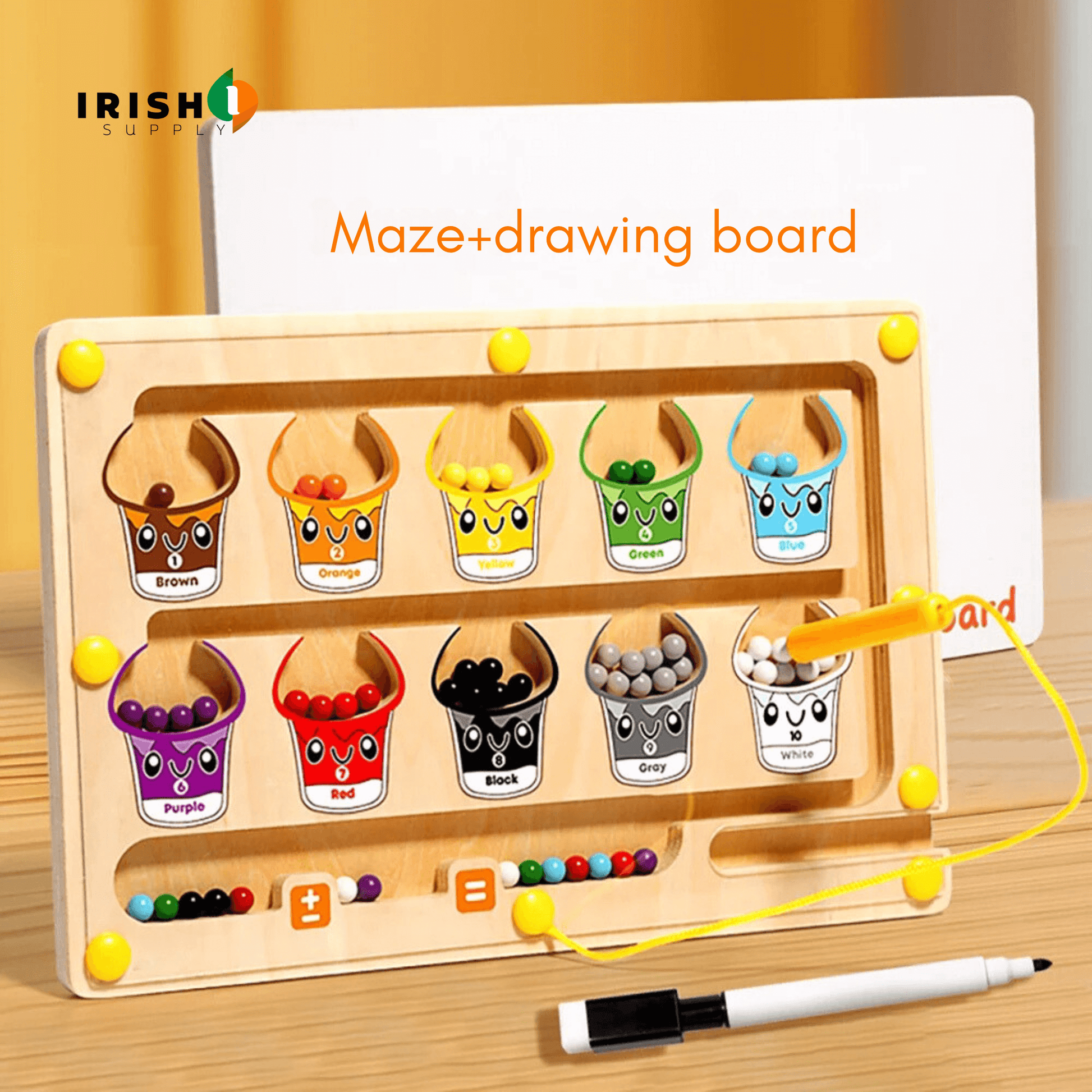 1 x COLORO 2 In 1 Wooden Magnetic Color & Number Maze with Back drawing board