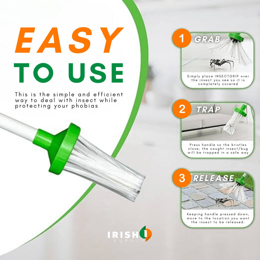 INSECTGRIP is your reliable companion for pest control, featuring an extra-long handle that keeps you safely away from those unwelcome critters. Say goodbye to the ickiness of touching insects. This innovative tool provides a fun and friendly way to remove spiders, roaches, scorpions, and other pests from your home. With a simple squeeze of the handle, you can open the soft nylon bristles, capture the insect, and release it safely outside. It's the perfect solution to eliminate the discomfort and fear of encountering creepy crawlies in your space.