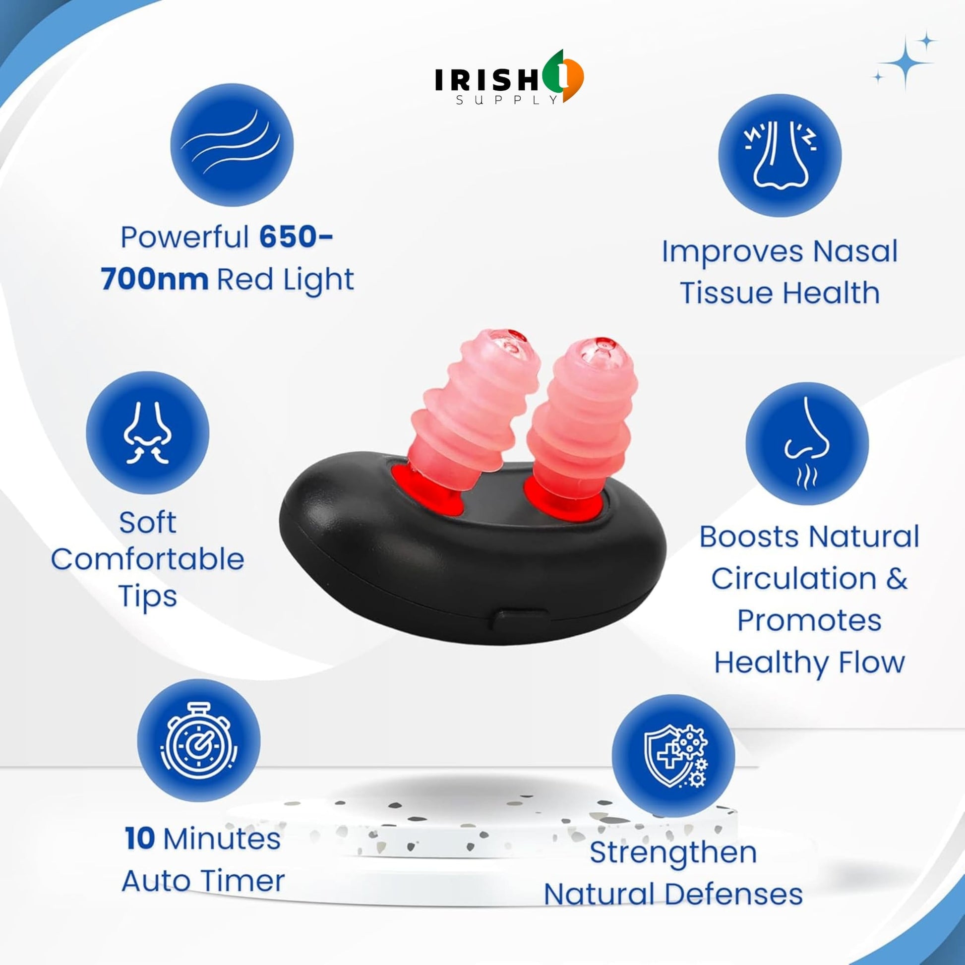 The NARELUX device uses precision red light technology to deliver concentrated energy right where it's needed—inside your nasal cavity. By targeting the sinus area directly with 650–700nm red light, it supports blood flow and reduces tension, offering gentle yet effective comfort without medication or side effects.