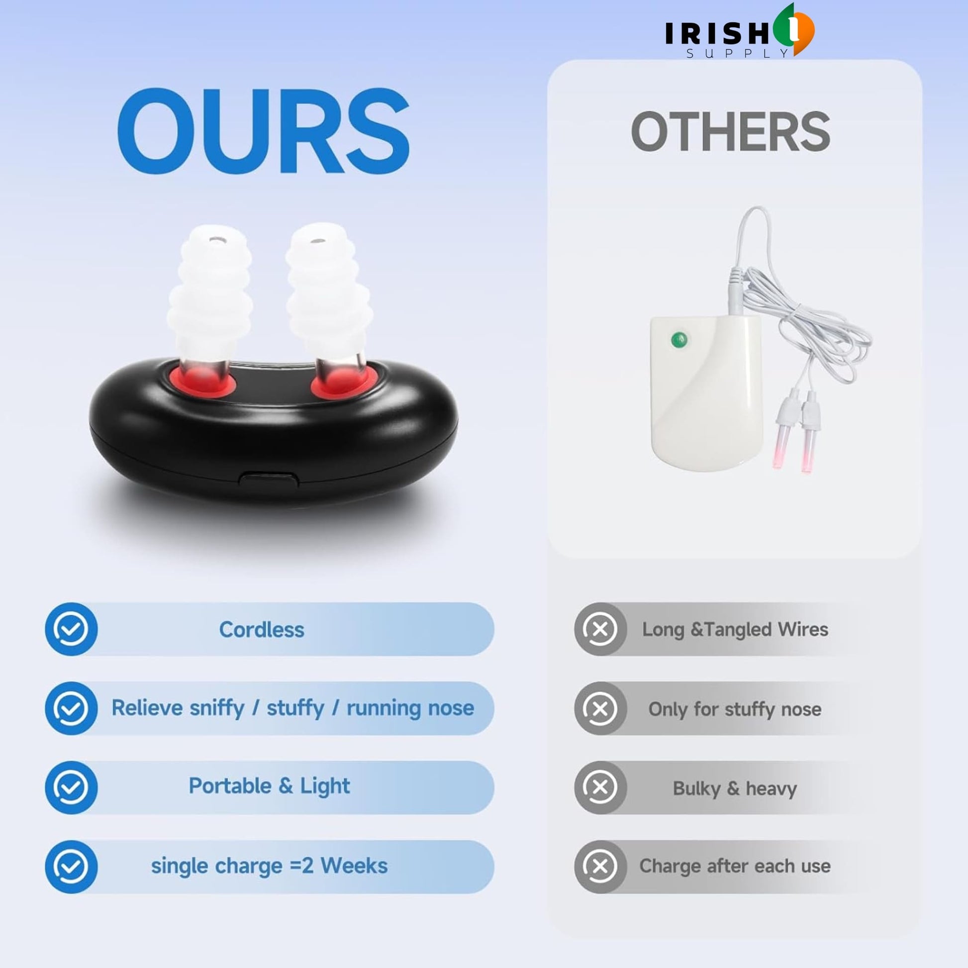 You don’t need a prescription or complicated setup to get relief. NARELUX is USB rechargeable, easy to clean, and super simple to use with one-button control. It's a natural, drug-free alternative to CPAP machines and nasal sprays—and Irish customers are calling it a game-changer for everyday relief.