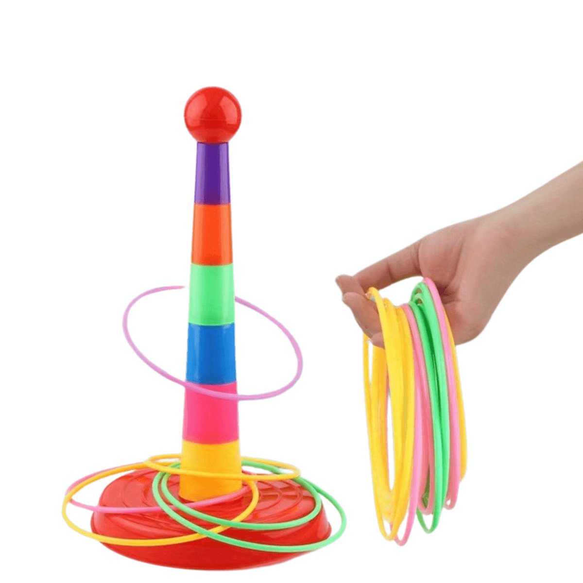The RINGO Ring Toss Game is designed to stimulate your child's cognitive and motor skills. The vibrant colors of the cups and rings help develop color recognition, while the act of stacking and sorting promotes size differentiation and counting abilities. This game is a fun way to enhance brain development, ensuring your child learns while they play.
